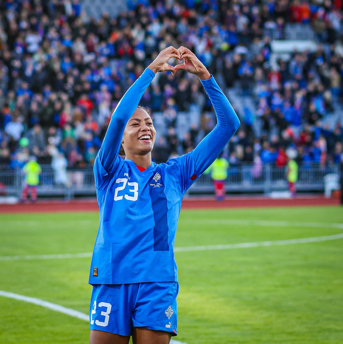 Sveindís er gífurlega vinsæl en hún spilar með Wolfsburg, einu besta félagsliði heims. Þá er hún lykilleikmaður í íslenska landsliðinu.