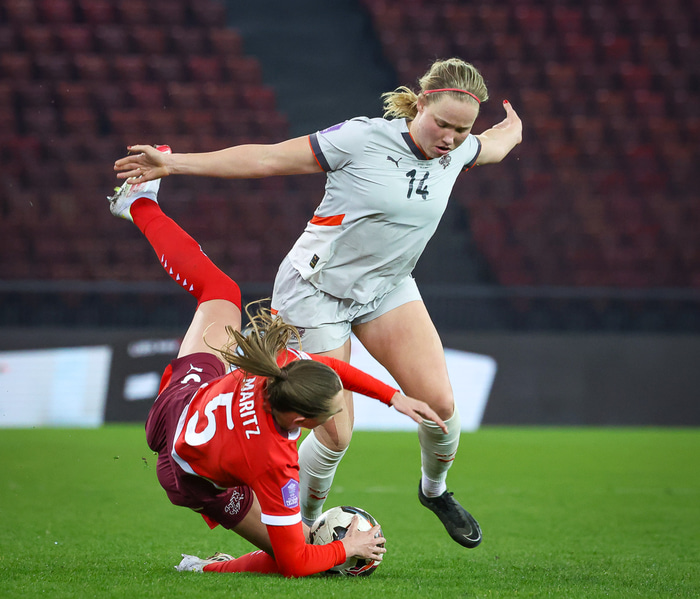 „Frammistaðan á móti Sviss var kannski ekki okkar besta en við getum tekið eitthvað jákvætt með okkur og svo höldum við bara áfram," sagði Hlín Eiríksdóttir kantmaður Íslands við Fótbolta.net en Ísland gerði markalaust jafntefli við Sviss í Þjóðadeildinni á föstudaginn.