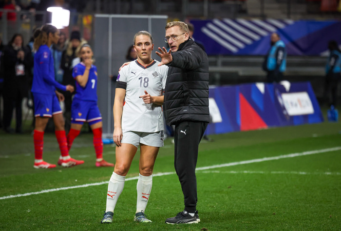 Franska liðið var töluvert meira með boltann og skapaði sér hættulegri færi. Liðið komst í tveggja marka forystu en Karólína Lea Vilhjálmsdóttir kom Íslandi inn í leikinn með aukaspyrnu sem fór af Selmu Bacha og í netið.