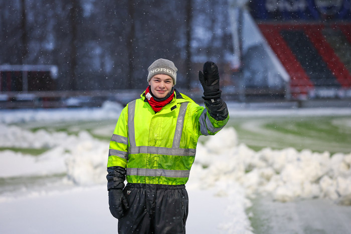 „Leiknum verður frestað um einhverjar mínútur. Hvorugt lið er byrjað að hita upp vegna mikillar snjókomu. Miðað við það sem ég heyri hefst leikurinn korter yfir sjö," skrifaði Kári Snorrason í textalýsinguna hér á Fótbolti.net.