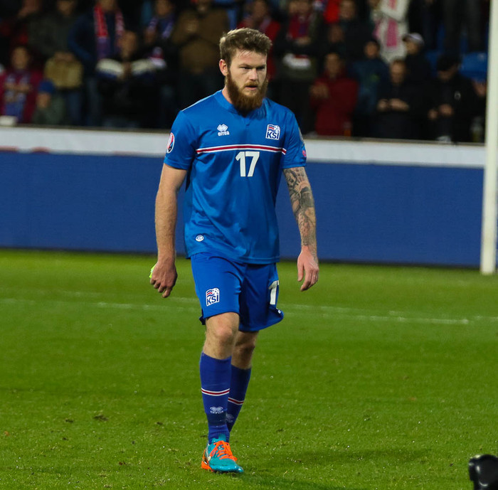 Aron Einar Gunnarsson, fyrirliði Íslands, lenti eldsnemma í morgun í Kasakstan en framundan er leikur gegn heimamönnum í undankeppni EM.