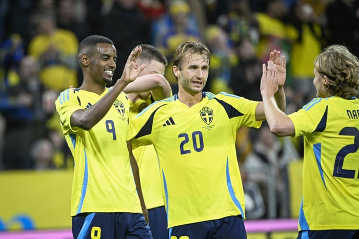 Ken Sema og Isak bættu sitthvoru markinu við snemma í síðari hálfleik áður en Anthony Elanga kom inn af bekknum til að skora fimmta markið.