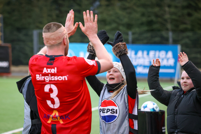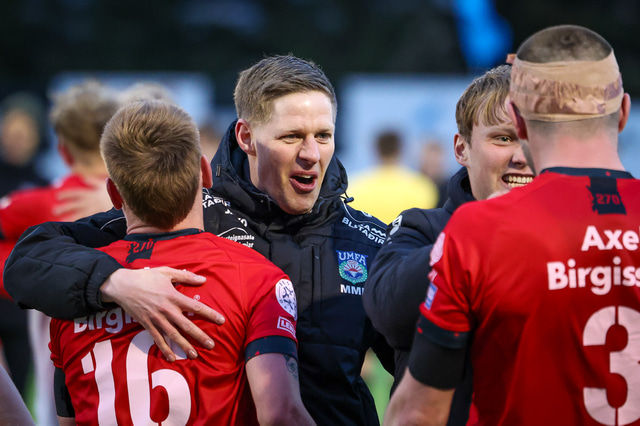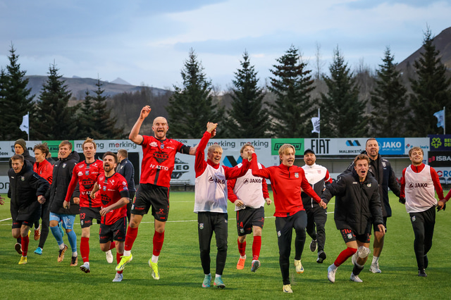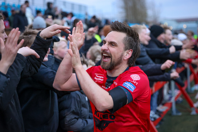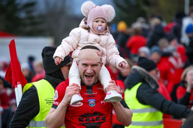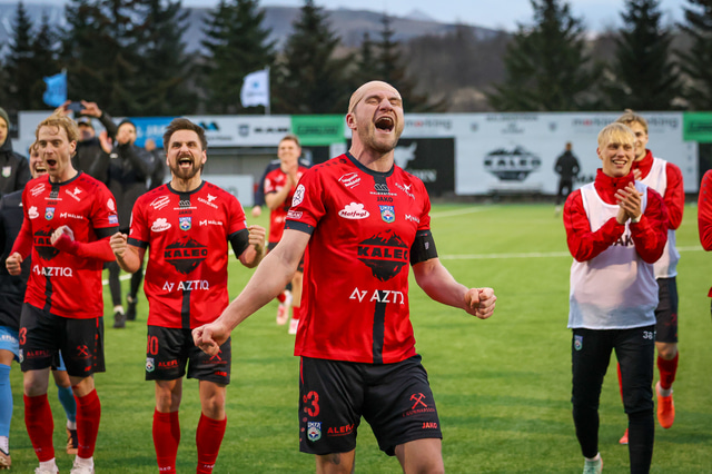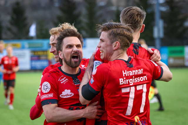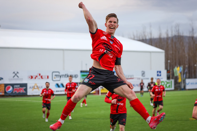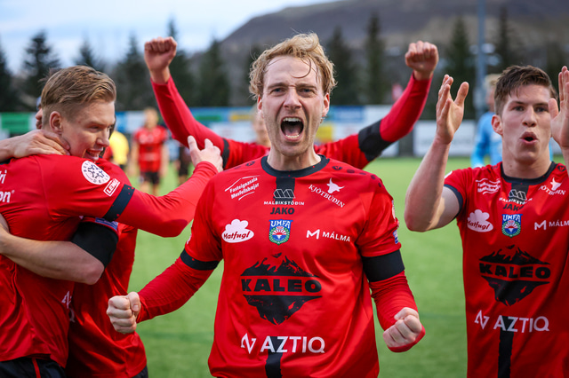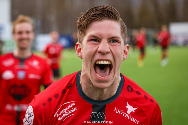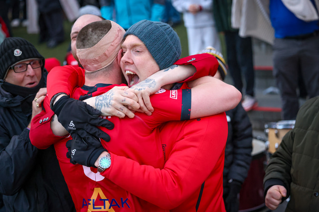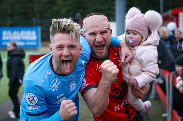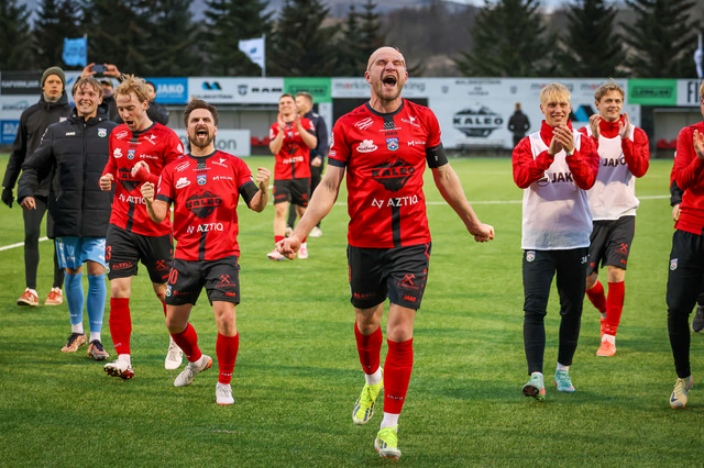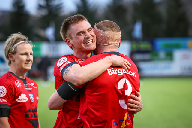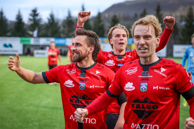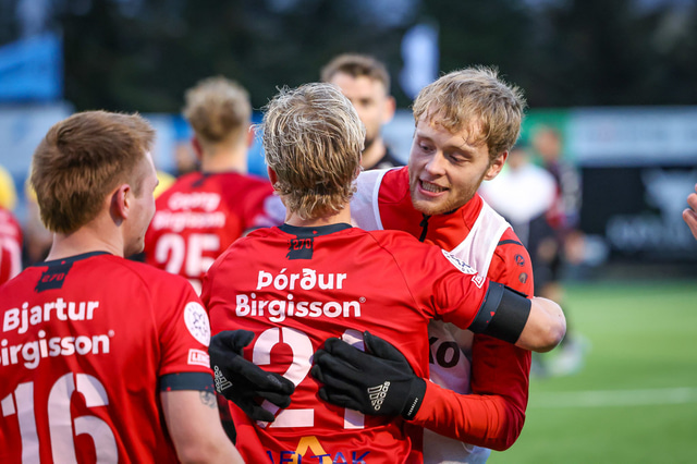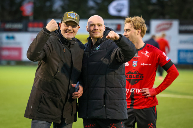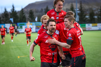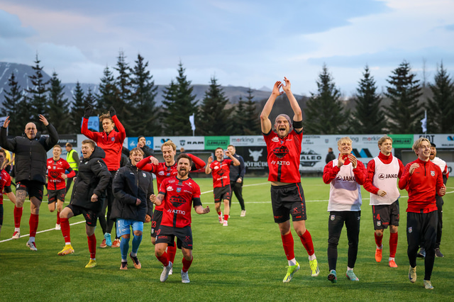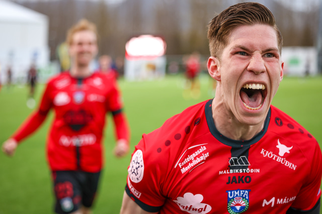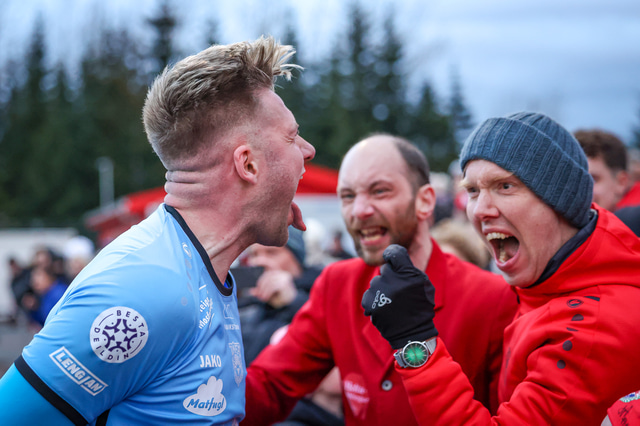 Hafliði Breiðfjörð var á vellinum og fangaði augnablikið eins og honum einum er lagið. Meðfylgjandi eru myndir af fagnaðarlátunum úr Mosfellsbæ frá því í gær.