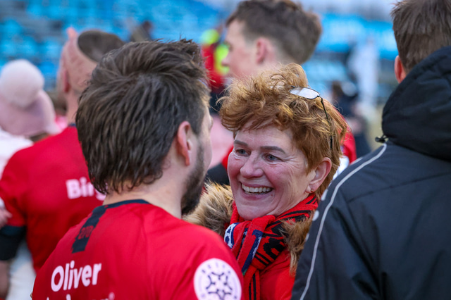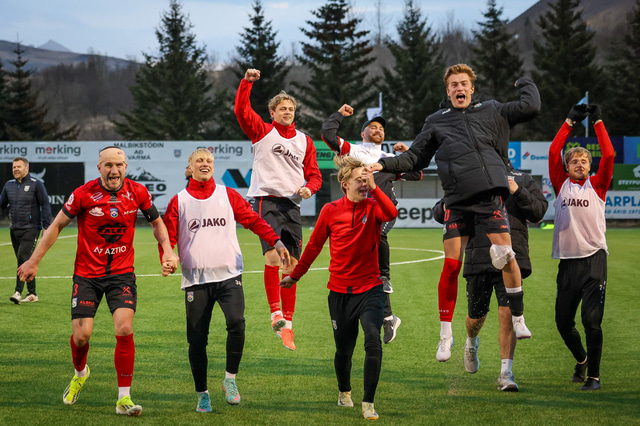 Það var mikil gleði í Mosfellsbæ þegar markið kom og þegar sigurinn var í hús. Það var mikill fjöldi áhorfenda á leiknum og var þéttsetið í stúkunni.