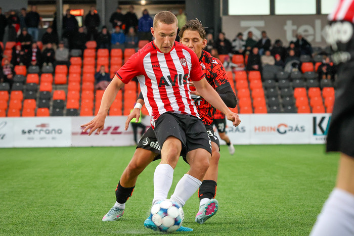 Keflavík er áfram í efsta sæti en liðið slátraði Leikni, neðsta liði deildarinnar 6-0. Kári Sigfússon skoraði þrennu í leiknum og Sindri Snær Magnússon átti miðsvæðið.