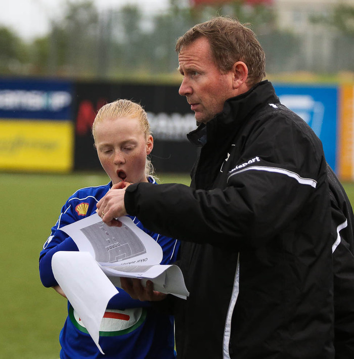 ,,Þetta var hörkuleikur allan tímann og bæði lið fengu þolanleg færi. Sandra varði frábærlega og við skölluðum framhjá úr dauðafæri. Mínar stelpur höfðu meiri kjark og þor og kláruðu þetta."