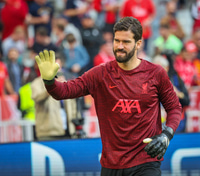 Alisson Becker, markvörður Liverpool, fagnar því að félagið sé að ganga frá kaupum á georgíska landsliðsmanninum Giorgi Mamardashvili.