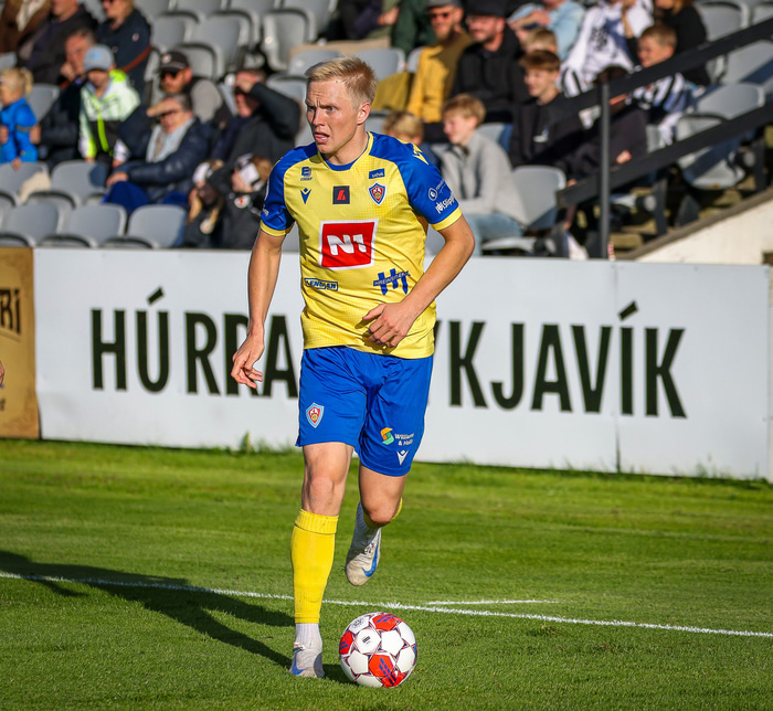 Dagur Ingi Valsson skoraði sigurmarkið á lokamínútu uppbótartíma. Dagur er nýgenginn til lið við KA og þetta var aðeins annar leikurinn hans fyrir félagið.