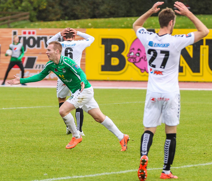 Sveinn Aron Guðjohnsen skoraði sigurmarkið þegar Breiðablik vann 3-2 sigur á ÍBV í gær og tryggði sér um leið áframhaldandi veru í Pepsi-deildinni. Hér að neðan er myndaveisla.