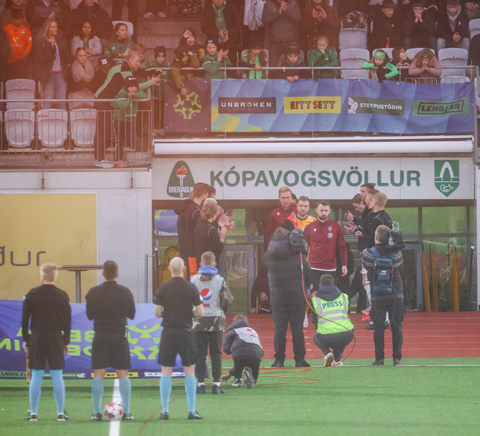 Óskar stóð við sín orð og Blikar stóðu heiðursvörð fyrir Víking og klöppuðu fyrir erkifjendum sínum þegar þeir gengu til vallar.