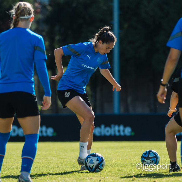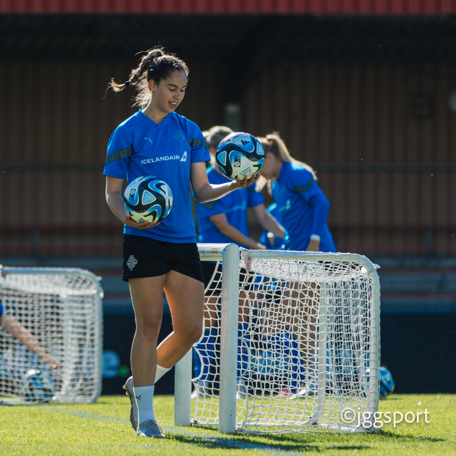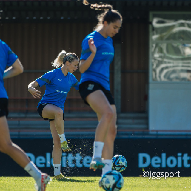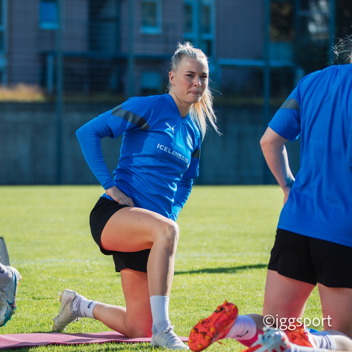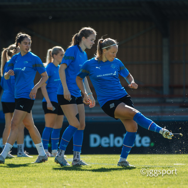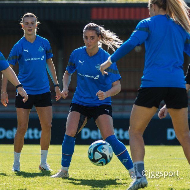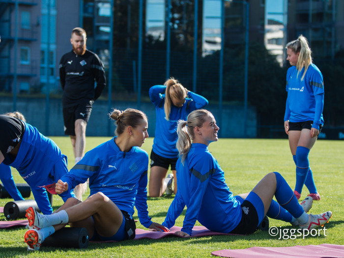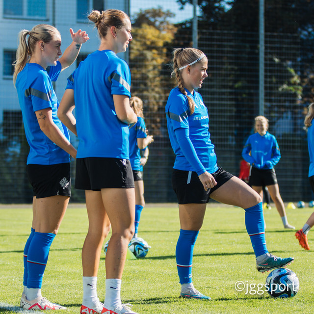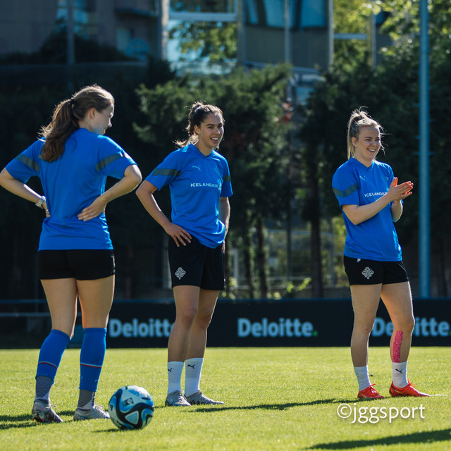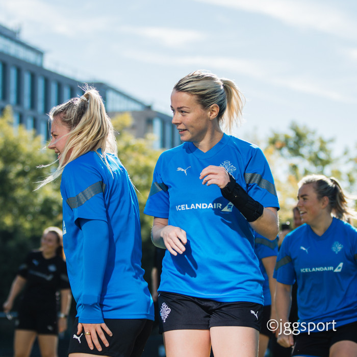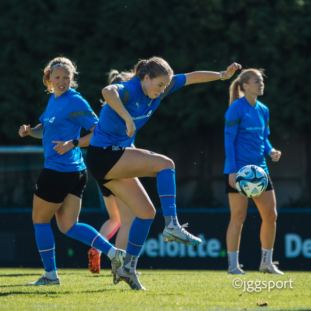 Ísland æfði á æfingasvæði í Dusseldorf í gær en liðið mætir Þýskalandi í Þjóðadeild kvenna í Bochum á morgun. Hér að neðan er myndaveisla frá æfingunni.