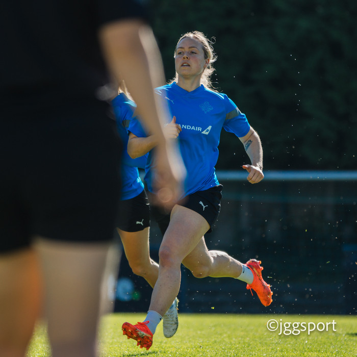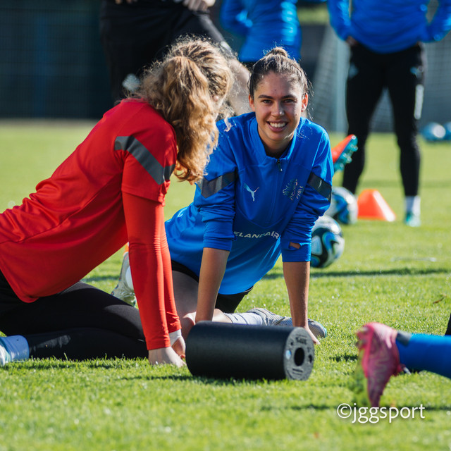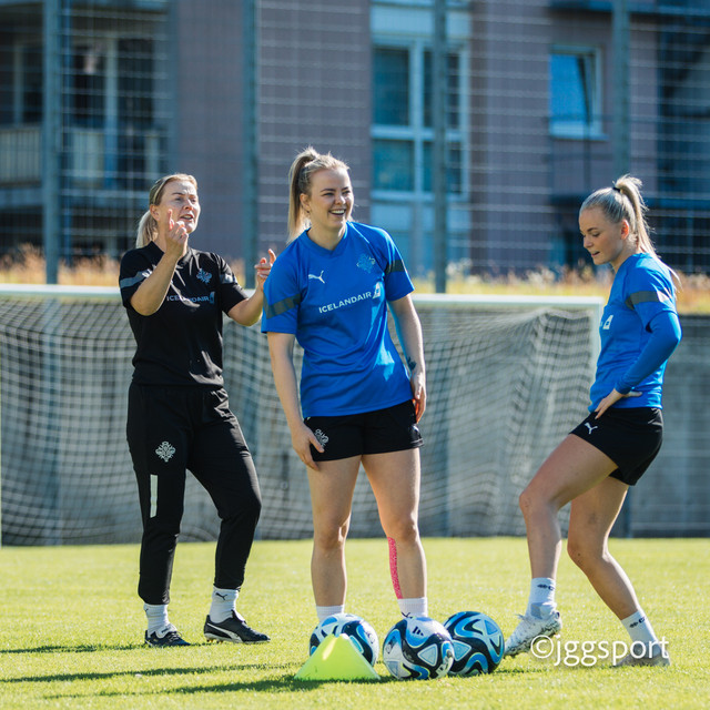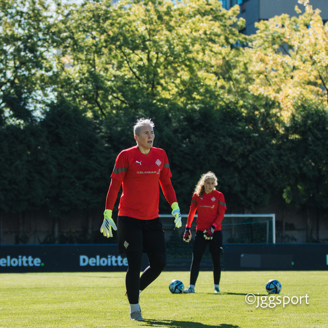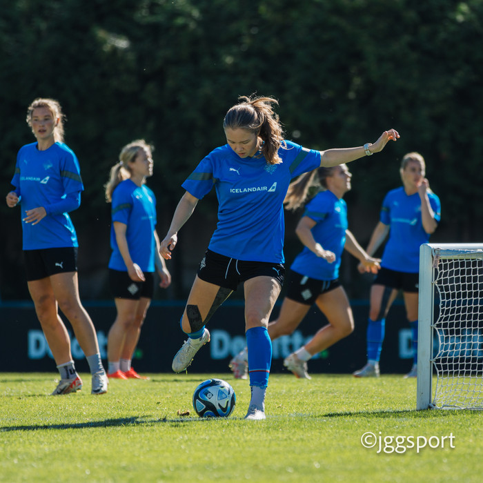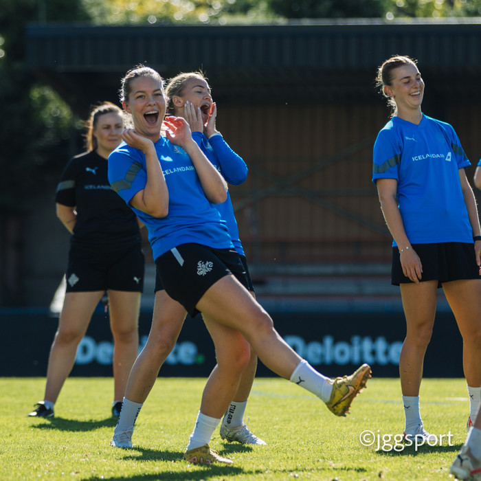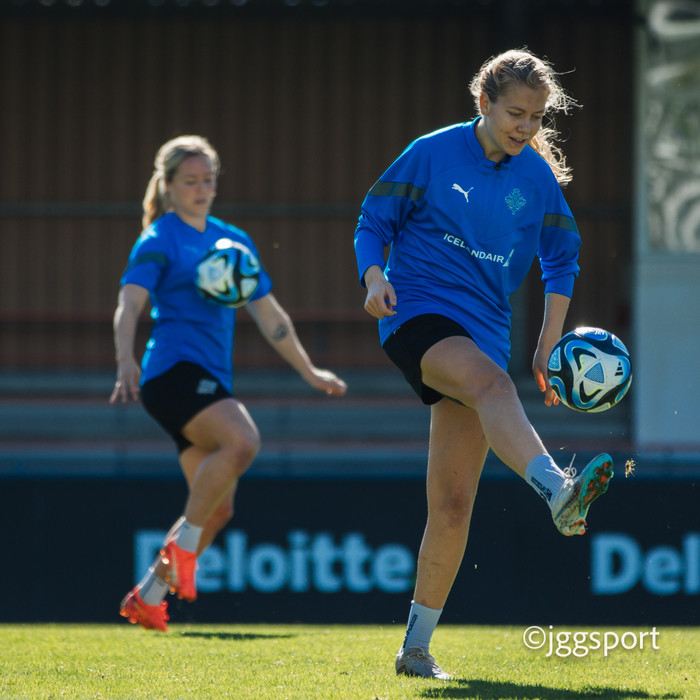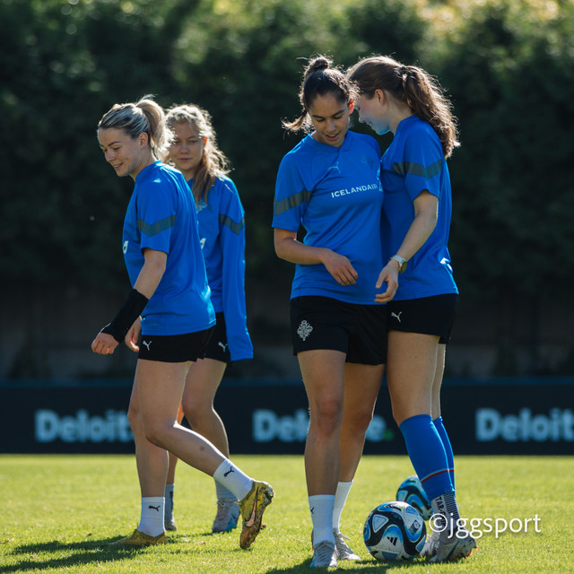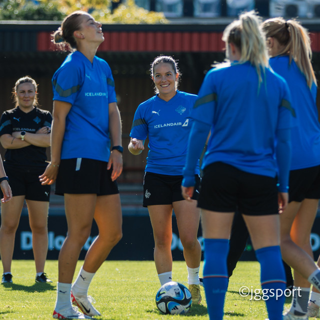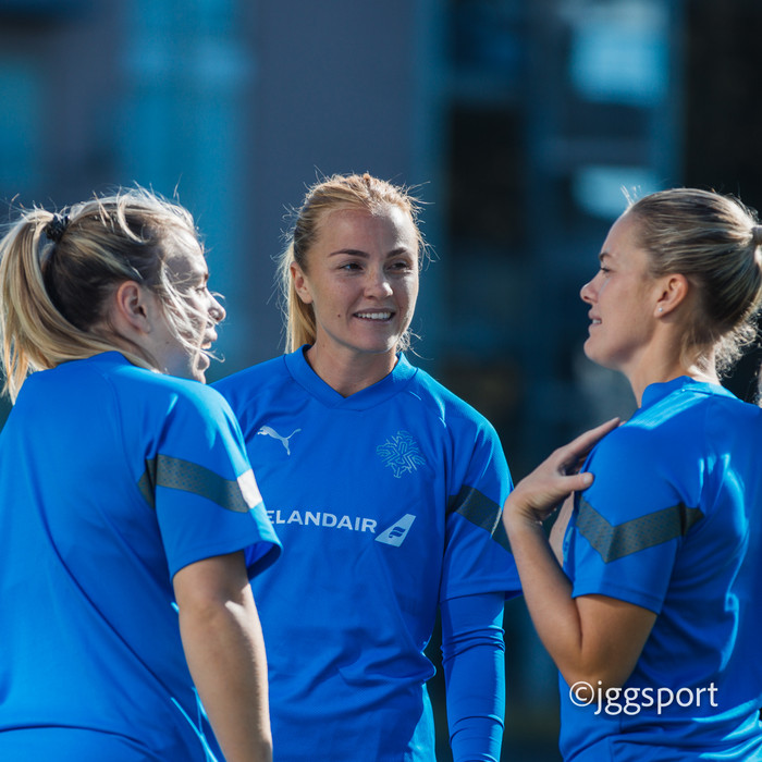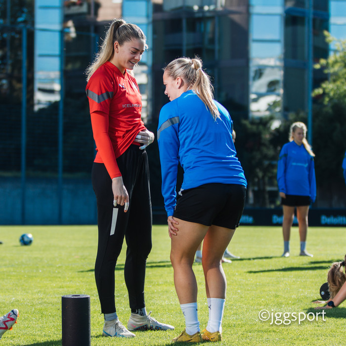 Ísland æfði á æfingasvæði í Dusseldorf í gær en liðið mætir Þýskalandi í Þjóðadeild kvenna í Bochum á morgun. Hér að neðan er myndaveisla frá æfingunni.