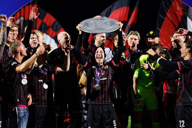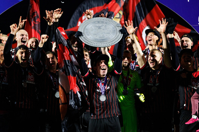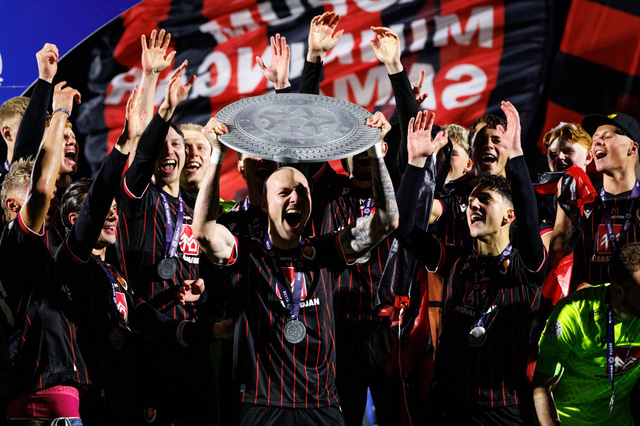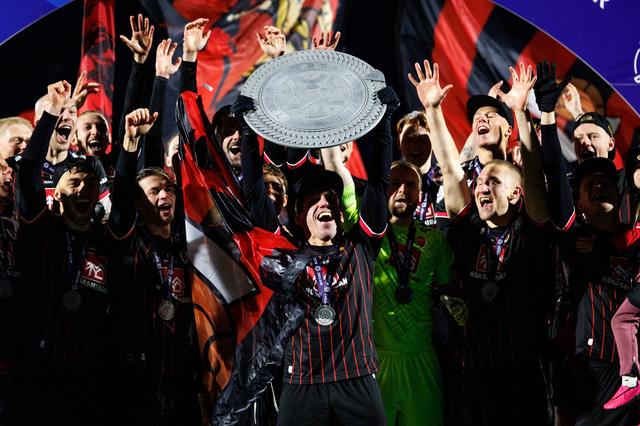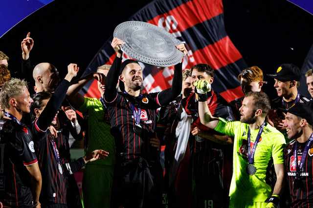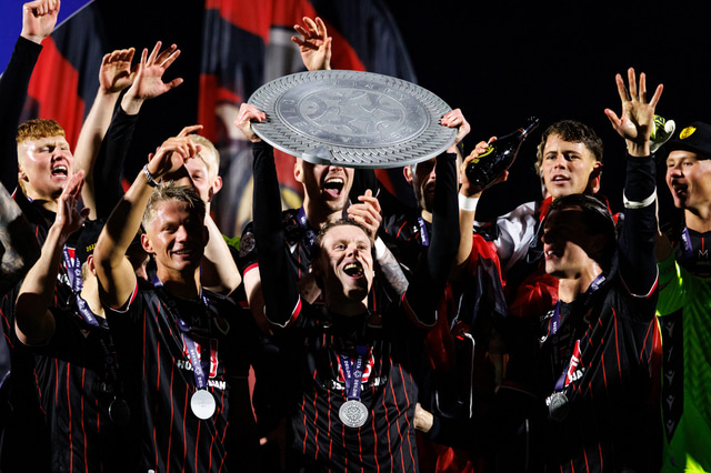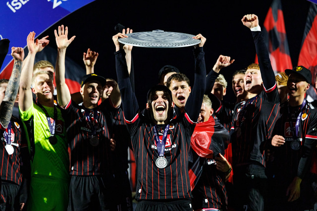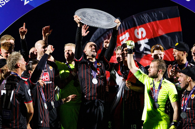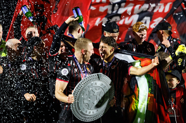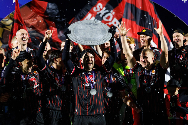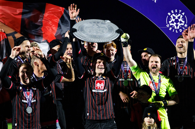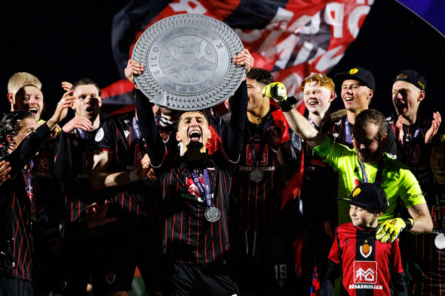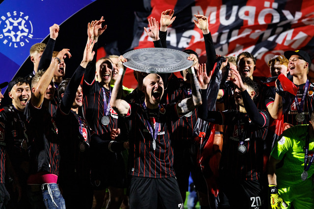 Víkingur varð fyrr í þessum mánuði Íslandsmeistari í áttunda skiptið og í dag tóku Víkingar á móti skildinum eftir 2-0 sigur á Val í lokaumferðinni.