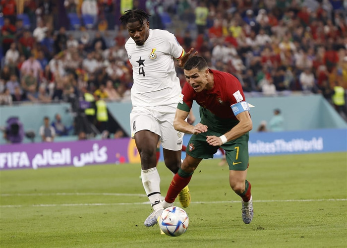 Addo var verulega ósáttur við vítaspyrnu sem Portúgal fékk í seinni hálfleiknum þegar ofurstjarnan Cristiano Ronaldo fór niður í teignum. Addo fannst Ronaldo fara niður við litlar sakir.