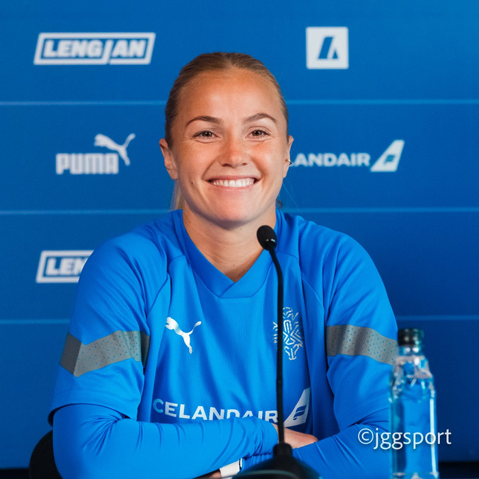 Glódís Perla Viggósdóttir, landsliðsfyrirliði, sat einnig fundinn. „Það er helst það að gera betur með boltann þegar við erum með hann. Og að sama skapi þegar við erum að verjast að gera það aðeins þéttar en við vorum að gera á tímum í leiknum úti í Serbíu. Það er algjört lykilatriði," sagði Glódís.