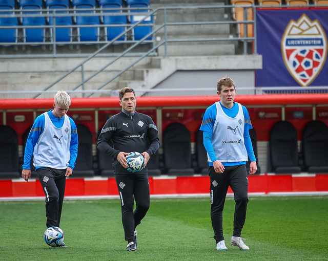 Ísland æfði í Leichtenstein í gær en þjóðirnar mætast þar í undankeppni EM 2024 síðar í dag. Hér að neðan má sjá svipmyndir af æfingunni.