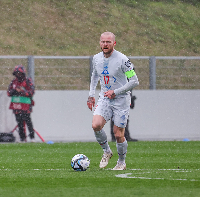 Jón Dagur Þorsteinsson kom með laglega hornspyrnu inn í teignin og var það Aron sem stýrði boltanum á nærstöngina.