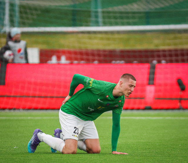 Óskar Hrafn býst ekki við að meiðslin séu af alvarlegum toga og gerir ráð fyrir honum í næsta leik sem er gegn Keflavík á mánudag.