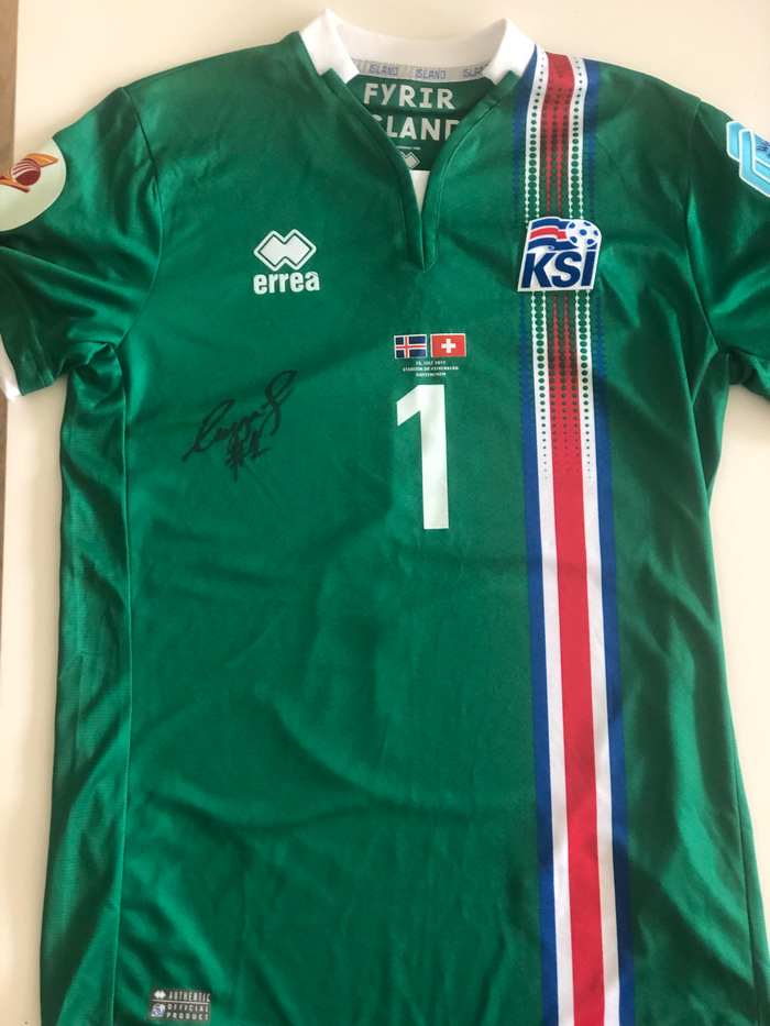 Guðbjörg Gunnarsdóttir er með áritaða íslenska landsliðstreyju á lottó uppboði til styrktar Hjartavernd