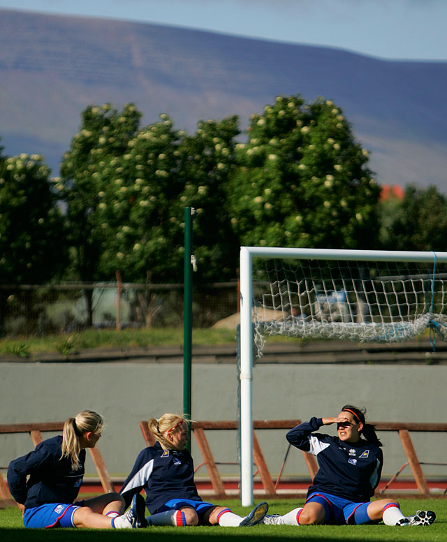Þetta voru þeir leikmenn sem voru fyrstu fulltrúar Íslands á Evrópumótinu, brautryðjendurnir. Mótið í Finnlandi hófst í lok ágúst. Eitt það skemmtilegasta við upphitunina fyrir mótið hér á síðunni var það að leikmenn í liðinu skiluðu af sér tveimur dagbækum fyrir fyrsta leik þar sem þær gáfu lesendum innsýn inn í það hvernig lífið væri á stórmóti.