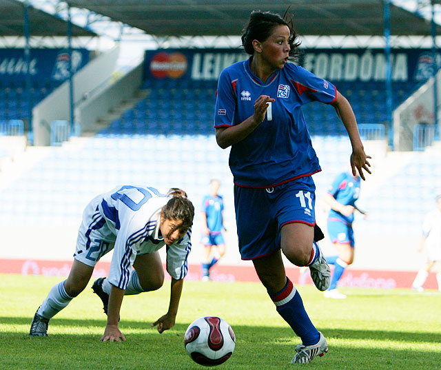 Sara Björk Gunnarsdóttir var orðin byrjunarliðskona hjá Íslandi á þessum tíma en hún er fædd árið 1990. Var enn bara unglingur þarna.
