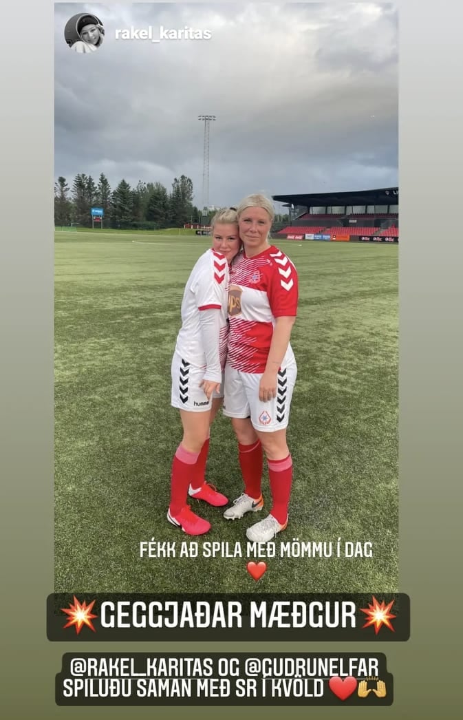 Mæðgurnar spiluðu saman síðustu 35 mínúturnar af leiknum og birti Rakel skemmtilega mynd af þeim eftir leik á Instagram reikningi sínum.