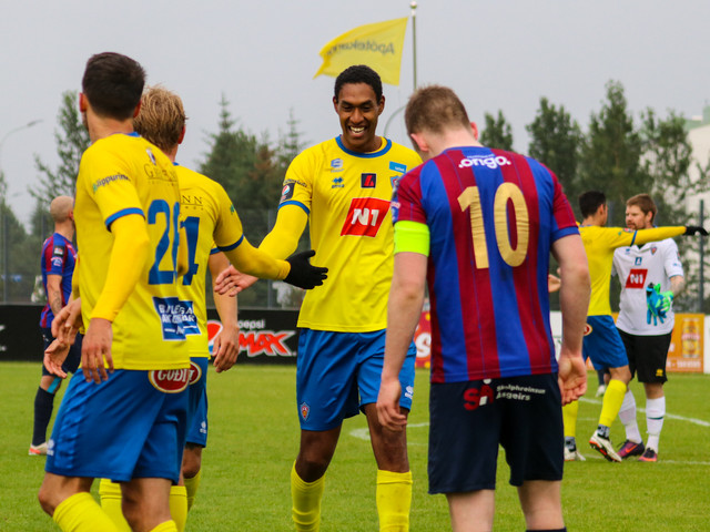 KA vann 0 - 1 sigur á Leikni í Breiðholtinu í gærkvöldi. Hér að neðan eru myndir frá Hauki Gunnarssyni.