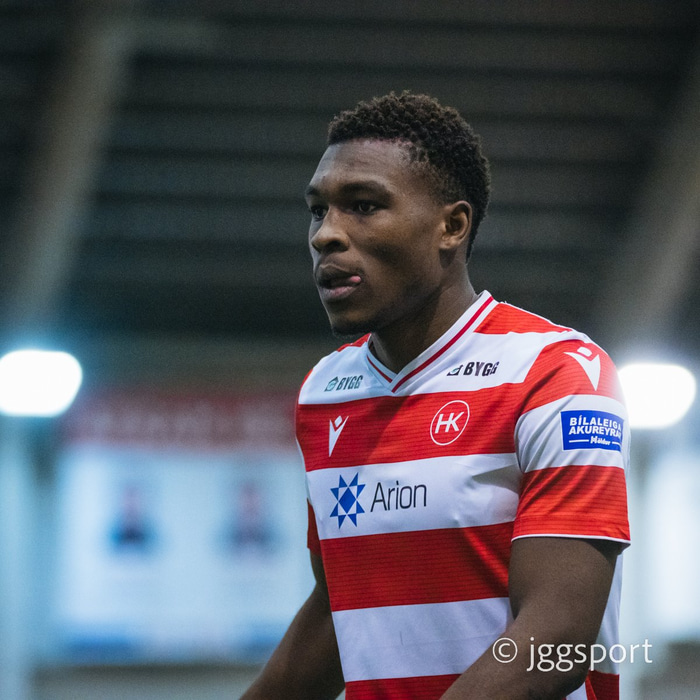 Hassan Jalloh fékk að rautt spjald í dag fyrir að kýla Baldvin Berndsen samkvæmt dómarateyminu.