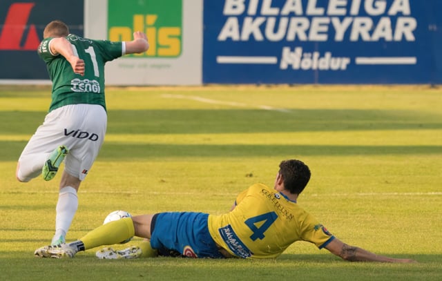 Völlurinn á Akureyri snæviþakinn á Evrópuleikdegi