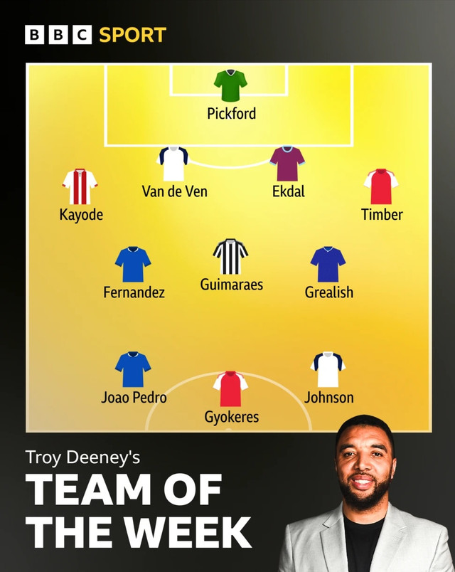 Troy Deeney, sérfræðingur BBC, velur lið umferðarinnar í ensku úrvalsdeildinni. Arsenal, Tottenham og Liverpool eru þau þrjú lið sem eru með fullt hús stiga að loknum tveimur umferðum.