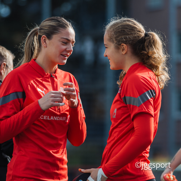 „Mér finnst það bara æðislegt," segir Telma í samtali við Fótbolta.net um markvarðarteymið. „Þær eru báðar frábærar. Þegar maður kemur inn í landsliðið þá skiptir engu máli hvaðan þú ert að koma. Það skiptir mig engu máli."