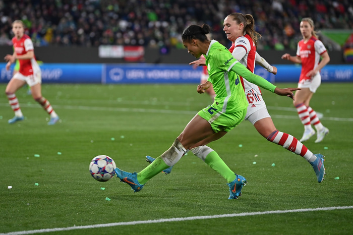Jule Brand kom Wolfsburg á bragðið á 11. mínútu og fékk Wolfsburg urmul af færum til að bæta við mörkum.