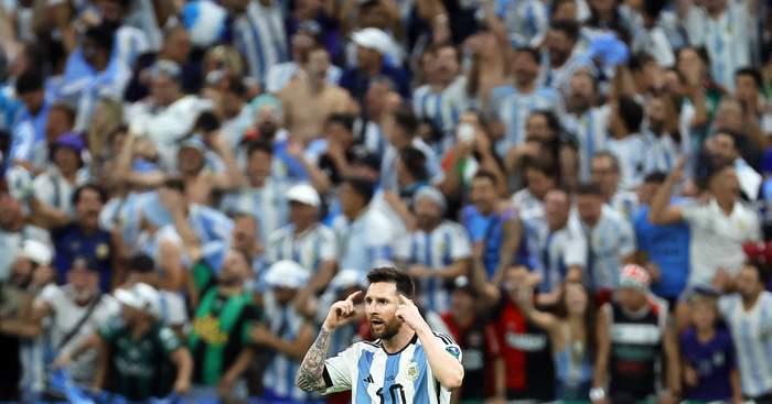 Kylian Mbappe framherji franska landsliðsins skoraði tvö í dag og jafnaði Messi í markafjölda á HM, sjö talsins en Messi hefur nú svarað því.