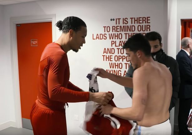 „Virgil! Get ég fengið treyjuna þína?" kallaði Soucek en Van Dijk svaraði: „Ég hef þegar lofað honum" og benti á Pablo Fornals.