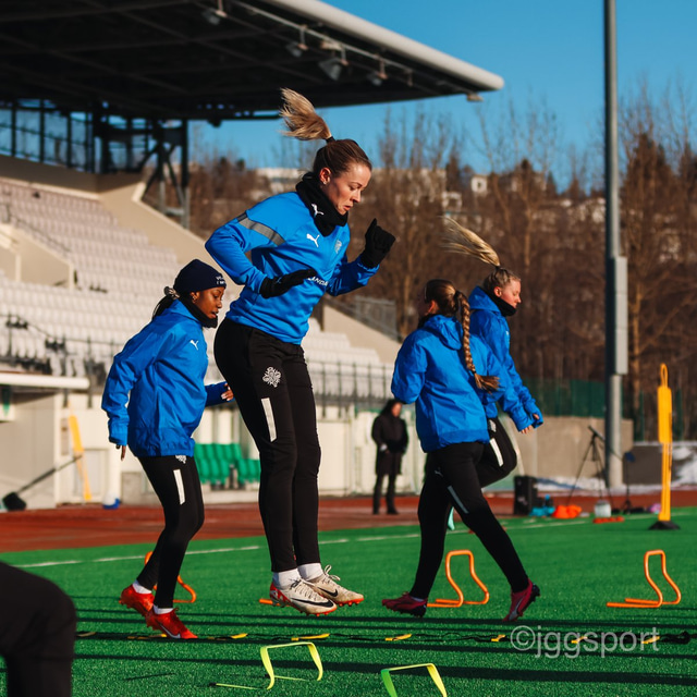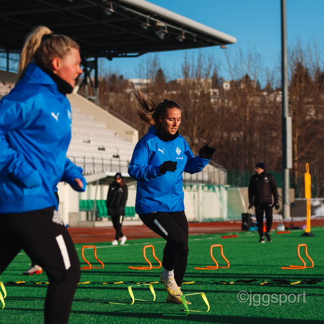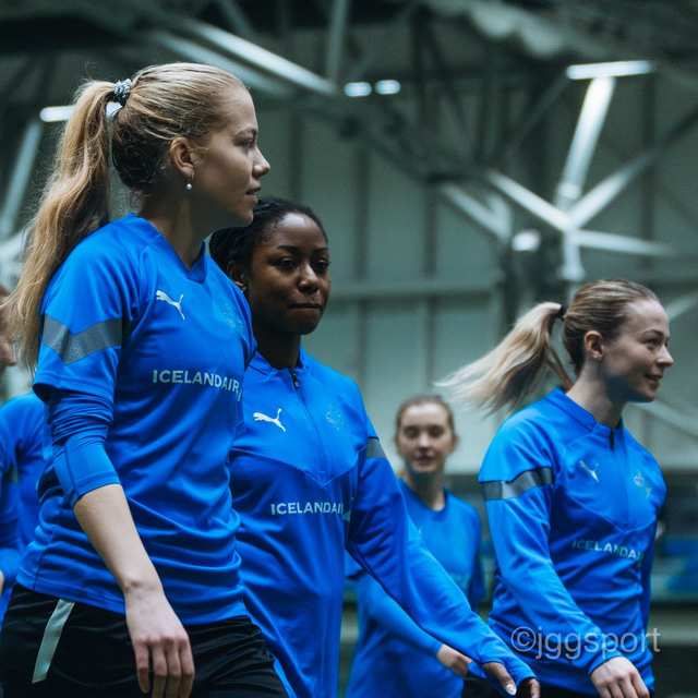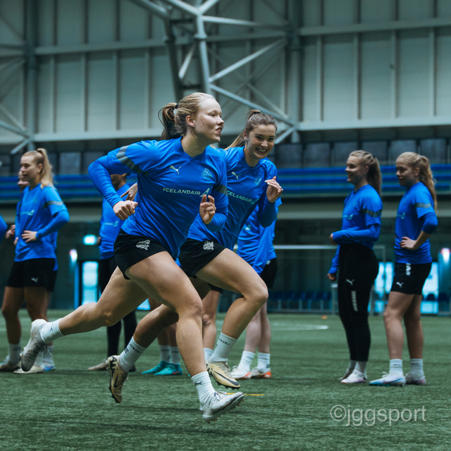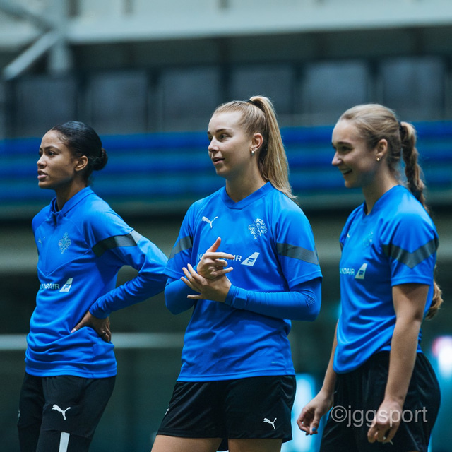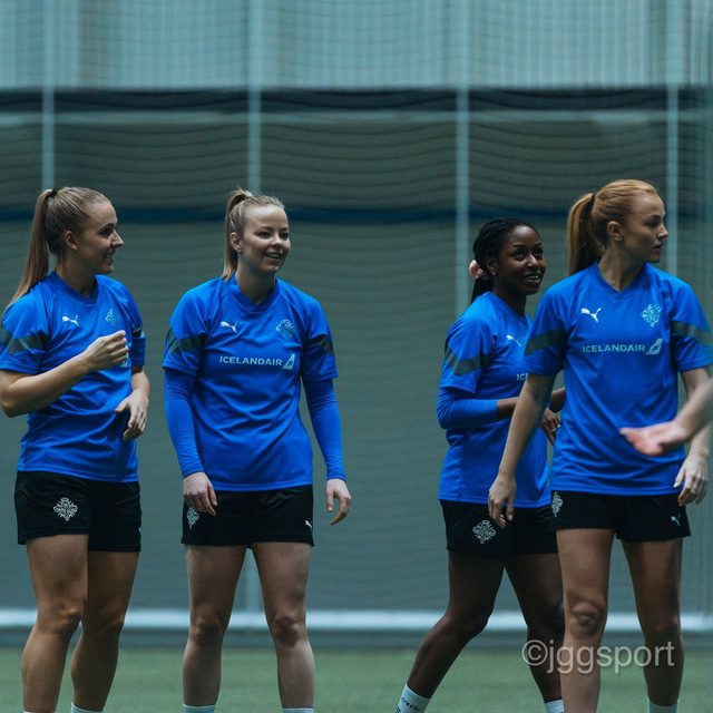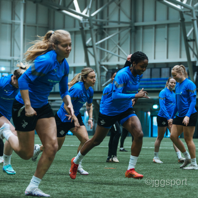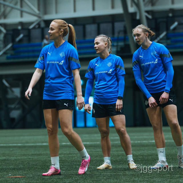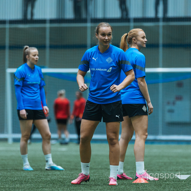 Liðið æfði í Kópavoginum í fyrradag og í gærmorgun í Miðgarði í Garðabæ. Jónína Guðbjörg Guðbjartsdóttir mætti á báðar æfingarnar og tók þessar myndir.