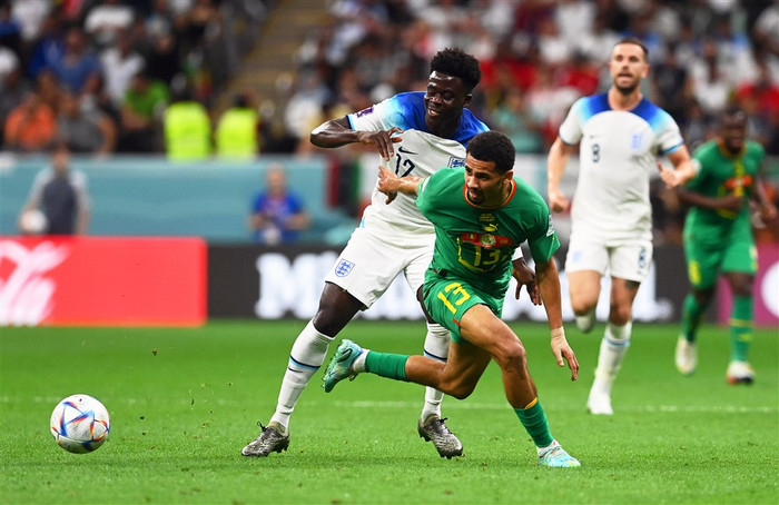 Bukayo Saka átti stórleik er England vann Úkraínu 2-0 í undankeppni Evrópumótsins í gær en hann skoraði og lagði upp. Gareth Southgate, þjálfari landsliðsins, er í skýjunum með frammistöðu leikmannsins.