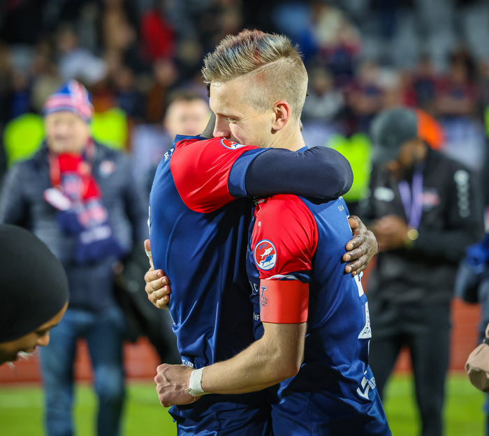 „Þegar það voru 118 mínútur búnar og við 1-0 yfir, þá kom í hausinn á manni hvað ég væri að fara að gera þegar dómarinn væri búinn að flauta af. Ég sagði við sjálfan mig: 'Ekki fara að gráta'. Þegar hann flautaði af þá ætlaði ég að taka eitthvað af stað en maður hrundi bara niður í jörðina og fór að hágrenja. Það er ekki hægt að lýsa þessu, það voru rosalega miklar tilfinningar. Ég veit ekki hvort aðrir í liðinu hafi upplifað þetta á sama hátt og ég verandi búinn að vera lengst í þessu af þessum heimastrákum sem voru í fyrra. Þetta var kannski enn stærra fyrir mig og var bara alveg ólýsanlegt. Ég veit ekki hvað maður getur sagt meira."