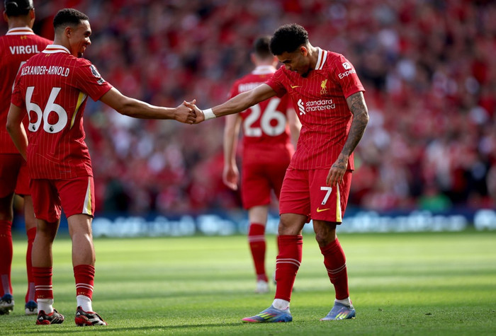 Heimamenn voru ekki lengi að bregðast við markinu. Fjórum mínútum síðar jafnaði Luis Díaz. Mohamed Salah spilaði boltanum inn á Dominik Szoboszlai sem lagði hann síðan inn á Díaz sem setti boltann í opið markið.