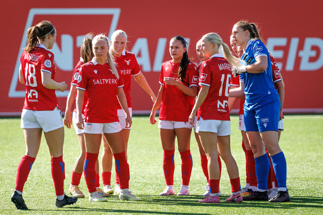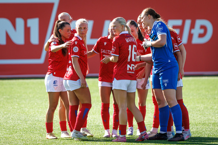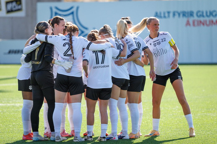 Það tafðist að hefja leik Vals og Grindavík/Njarðvík í fyrstu umferð Bestu deildar kvenna þar sem gat var á öðru markinu.