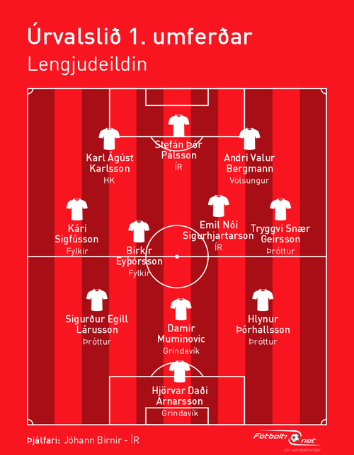 Jóhann Birnir Guðmundsson er þjálfari umferðarinnar og þá er Emil Nói Sigurhjartarson í liðinu. Hann skoraði tvö mörk og átti stoðsendingu.