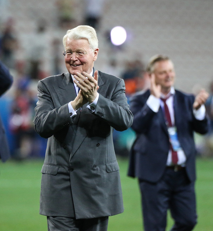 Ólafur Ragnar lét stundum sjá sig á landsleikjum þegar hann var forseti og fylgist greinilega enn nokkuð vel með.
