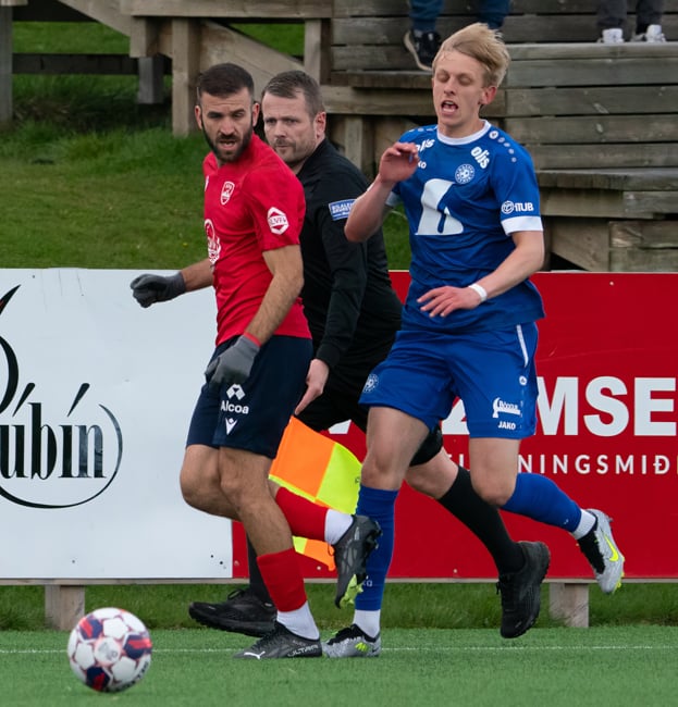 Rautt spjald: ,Mykolas Krasnovskis, KFA ('90), Einar Andri Bergmannsson , KFA ('91)