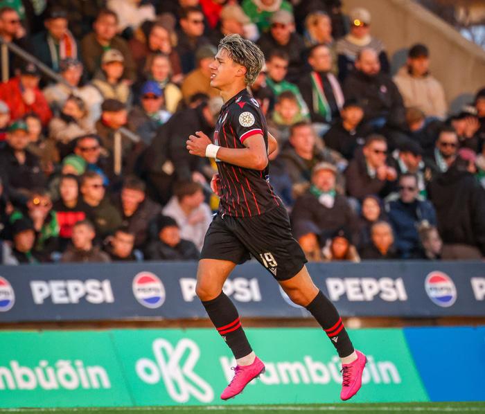 Karl Friðleifur Gunnarsson gerði annað markið á 22. mínútu eftir sendingu frá Matthíasi Vilhjálmssyni. Karl fagnaði að hætti enska landsliðsmannsins Cole Palmer. Víkingar komnir með þægilega forystu og gat Danijel bætt við þriðja en skot hans hafnaði í stöng um tíu mínútum fyrir lok fyrri hálfleiks.