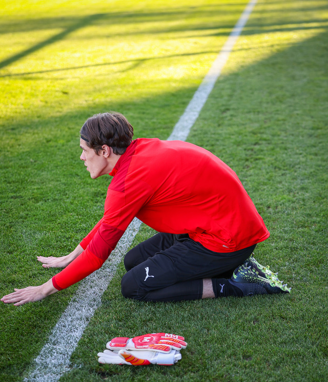 Hann er markvörður Trollhättan í Svíþjóð þar sem hann spilar á láni frá Gautaborg.