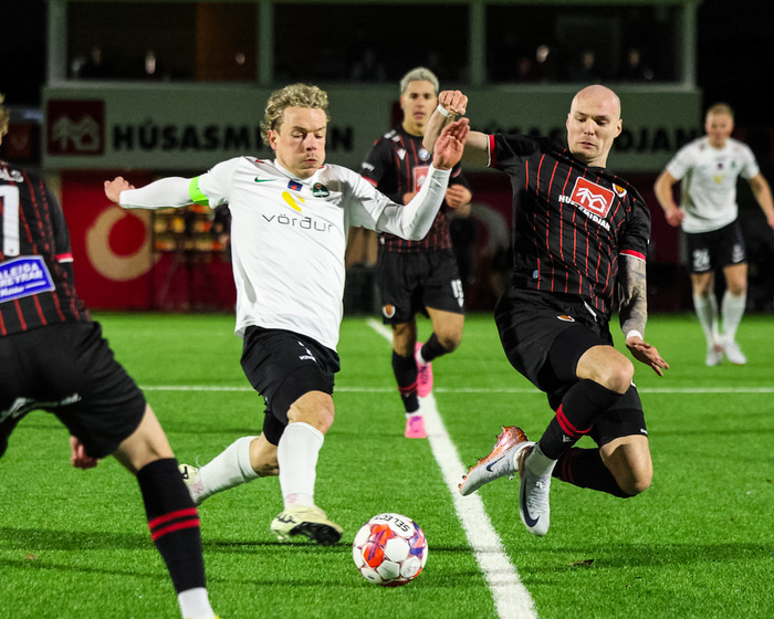 Ísak Snær er eini leikmaðurinn sem er kominn með gult spjald í leiknum.
