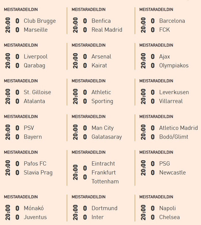 Lokaumferð Meistaradeildarinnar er framundan og flautað til leiks á öllum völlum klukkan 20. Það er markaregn í kortunum. Þetta verður líf og fjör!