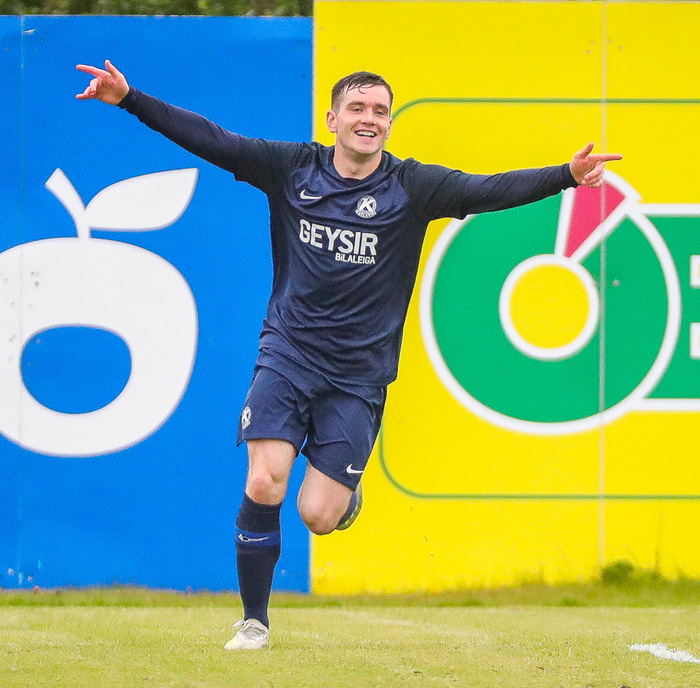 Markalaust var í leikhléi en á 53. mínútu skoraði varamaðurinn Ari Steinn Guðmundsson fyrsta mark leiksins.