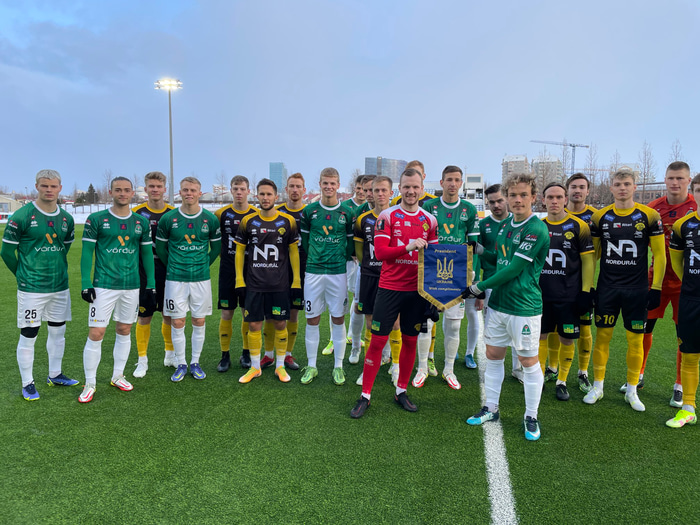 Fyrirliðar liðanna, Árni Snær Ólafsson og Höskuldur Gunnlaugsson, héldu á úkraínskum borða fyrir leik til þess að sýna samstöðu með Úkraínu.