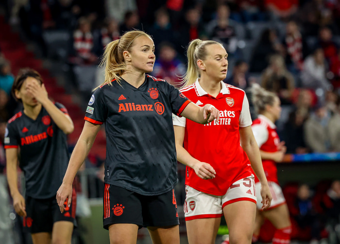 Hinar tvær treyjurnar eru á uppboði. Landsliðstreyjan er úr leik Íslands og Wales í desember síðastliðnum en þar vann Ísland 1-2 sigur. Svo er Bayern treyjan frá síðasta tímabili. „Þetta er treyjan sem ég spilaði í tímabilið 22/23 þar sem við urðum þýskir meistarar og spiluðum í átta-liða úrslitum Meistaradeildarinnar," segir Glódís.