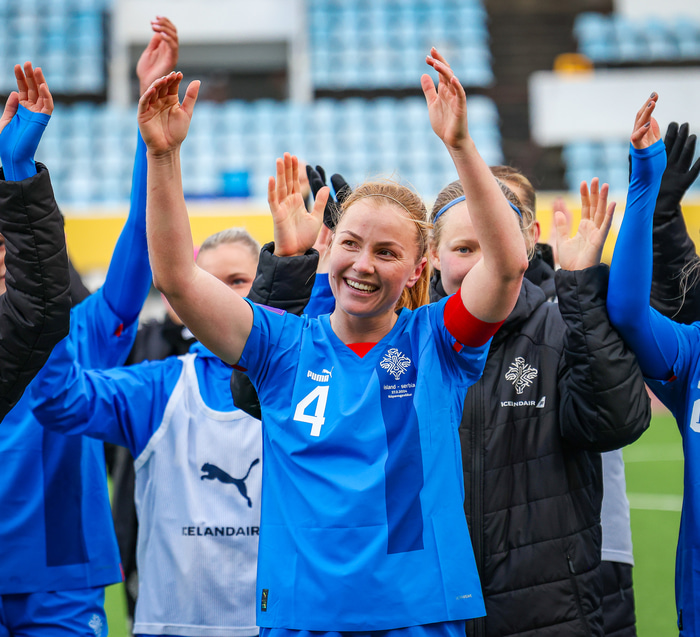 Glódís, sem hjálpaði Íslandi að halda sér í A-deild Þjóðadeildarinnar í síðustu viku, er að gefa þrjár treyjur og tvö skópör úr einkasafni sínu sem eru núna í boði á uppboði og í happdrættis lotteríi.